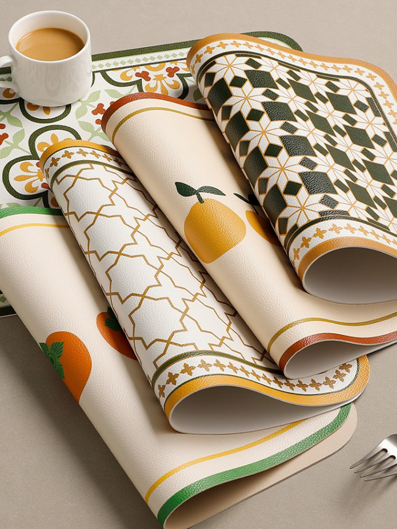 • Durable & Fade Resistant - These kitchen place mats are easy to wipe clean after each use. The placemats are resistant to scratches and stains, which makes them a great choice in homes with small kids. All of our placemats are cut by hand and look great on a variety of table tops, including glass, wood and metal